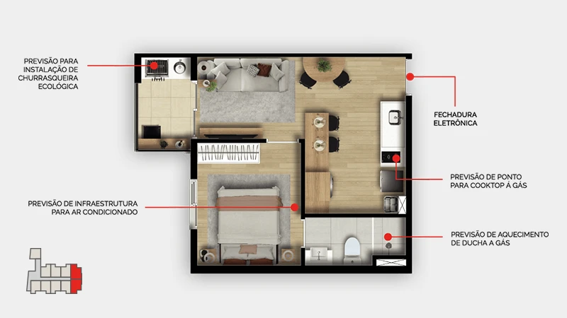 Nº de Dormitórios: 1 e 2 dormitórios | 1 suíte