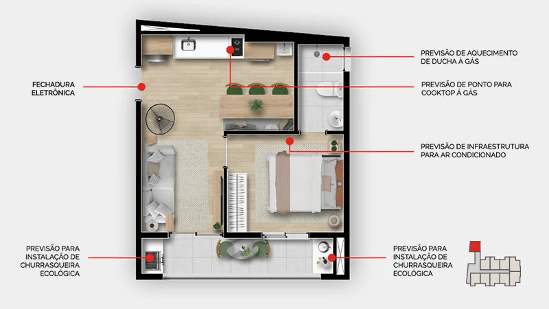 Planta Tipo A: 30,72 m² - 1 dormitório